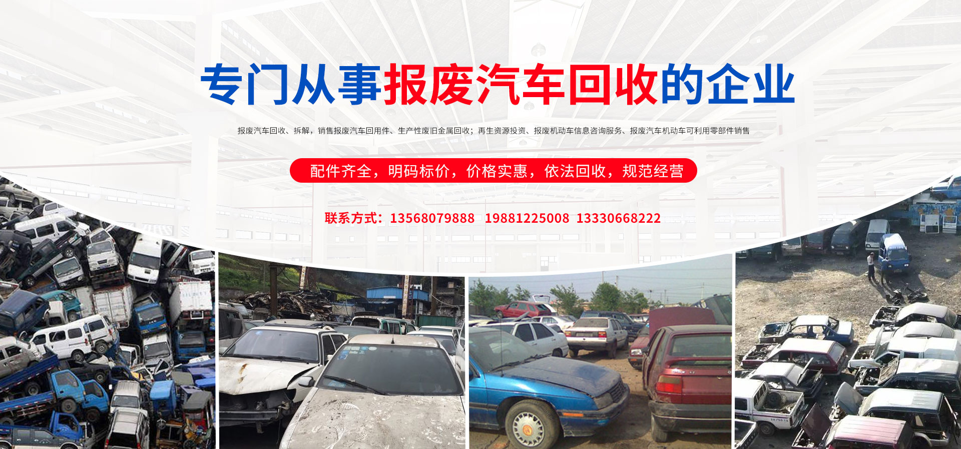 我公司在報(bào)廢汽車回收拆解中,認(rèn)真貫徹執(zhí)行國(guó)家法律法規(guī),嚴(yán)格執(zhí)行國(guó)務(wù)院令第307號(hào),積極開(kāi)展行業(yè)自律,依法回收,規(guī)范經(jīng)營(yíng),從源頭上控制了報(bào)廢汽車整車、拼裝車、“五大總成”等上路和重新流入市場(chǎng)的現(xiàn)象,為緩解我市資源短缺,減輕環(huán)境污染,促進(jìn)資源循環(huán),維護(hù)人民群眾生命財(cái)產(chǎn)安全和道路交通安全起到了巨大的作用。